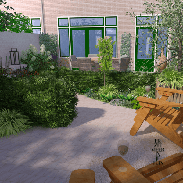 Onderhoudsarme materialen en een logische opbouw maken de tuin gebruiksvriendelijk en toekomstbestendig.